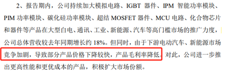 根据士兰微业绩预告显示,2024年上半年,由于下游电动汽车、新能源市场竞争加剧,部分产品价格快速下降,毛利率降低。
