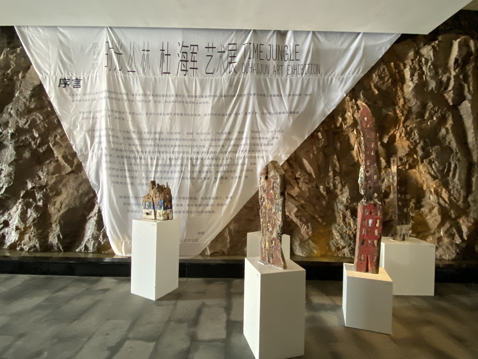 仲夏季,“时光丛林——杜海军艺术展”在鸿美术馆(诸暨馆)展出,展馆倚靠的嶙峋山石与杜海军的船木艺术相得益彰。近800平米的展厅内,可见上海艺术家杜海军历年精品约80多件,分主题展示: