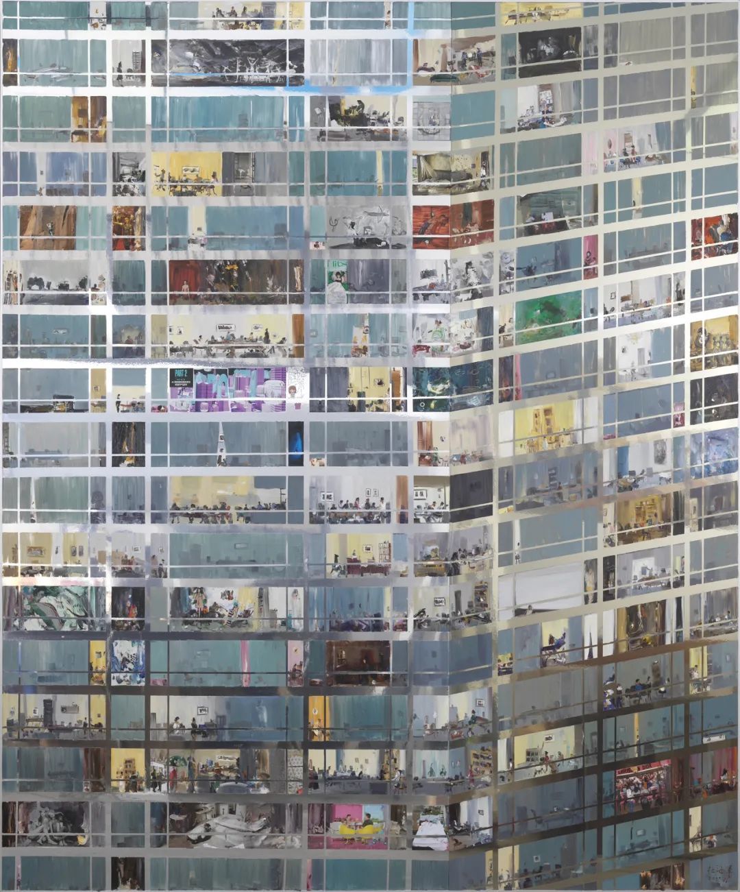 杜海军的画面是一个个流动的庇护所,将一扇扇窗后的家长里短一网打尽,又从窗内的一地鸡毛生出窗外的星光烂漫。他的画作让摩天楼不那么压迫,让一米阳光照亮暗屋,让一帘幽梦,莫成虚空。如果我们能从苦涩中咂摸趣味,秩序与宁静终将到来。