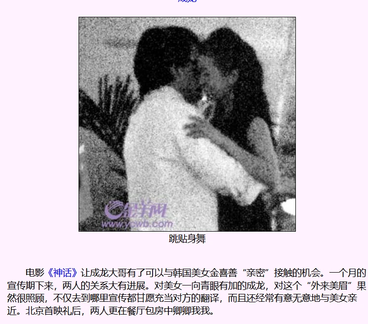 电影上映后二人的互动更是大胆,“包房夜擒金喜善”一起喝酒玩乐到早上四点钟,成龙金喜善贴面跳舞,龙哥牵手逗佳人,惹得金喜善笑声连连,“俨然一对打情骂俏的情侣”。