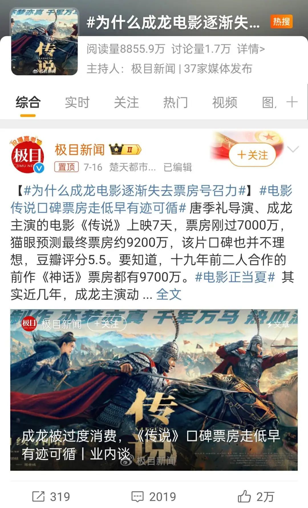宣发越努力越不幸,最出圈的热搜是#为什么成龙电影逐渐失去票房号召力#。