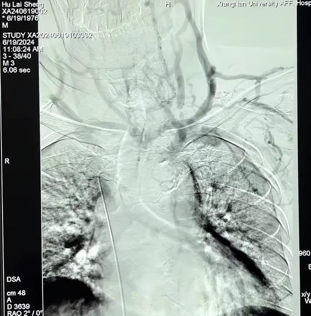 半年前,胡叔叔出现左上肢动静脉内瘘侧肢体肿胀,曾多次行中心静脉球囊扩张术,但治疗效果不佳,左上肢肿胀消退并不理想,还出现了颜面部肿胀、颈部及胸壁静脉明显曲张、透析时护士穿刺困难、透析中静脉压高、透析后止血困难等情况,患者生活及治疗都受到了严重影响。