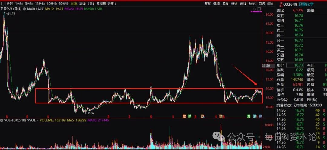 技术上看,虽然短线卫星化学破位走低,但5月份形成的高点不过刚刚触及其长期底部箱体震荡的上沿位置。对于这种业绩优良,且具有可逻辑性业绩想象空间,股价在低位震荡的股票,不要追高,保持耐心,重点关注。