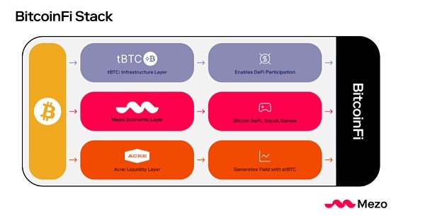 Mezo的开发团队曾开发过tBTC、Fold、Keep和Taho等产品。该团队多年来一直在围绕比特币开发应用程序。Mezo的目标很简单:扩展BTC的用例。它采用以下三种机制: