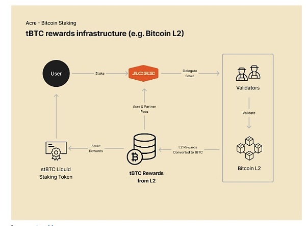 Yield是Mezo的核心产品之一,因为用户支付的费用是支付给质押BTC的验证者的。Mezo将通过与Mezo的姊妹项目Acre提供流动质押,进一步扩大BTC质押的范围。当用户将BTC存入Acre时,他们会获得一个流动质押代币stBTC作为回报。BTC存储可跨链应用,用于各DeFi应用程序。通过这些活动产生的收益以stBTC的形式积累,以1:1的比例与BTC兑换。
