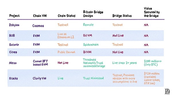 我们必须提到的是,除了上面提到的团队之外,还有许多其他团队(如Alpen、Bison、BitLayer、Rootstock、SatoshiVM和Soveryn)都在构建比特币的扩展层。
