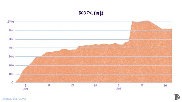 截至2024年6月17日,BOB已有约6000万美元的TVL,其中Sovryn DEX贡献了约2000万美元。