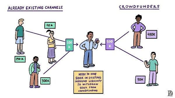 为什么这很重要?让我们举一个例子来理解。Joel正在筹集100万美元用于支付印度咖啡种植园工人的工资,他决定使用LN来接收捐款。他不能就这么打开LN钱包接收捐款。他需要有100万美元的流入资金。流动性流入是指交易对手锁定在通道中的BTC数量。Sid是Joel的交易对手之一,他锁定了一万美元。Joel需要更多像Sid这样的交易对手,他总共锁定了100万美元,接受了价值100万美元的捐款。这对网络扩容构成了重大挑战,因为流入的流动性总是受到资本机会成本的限制。