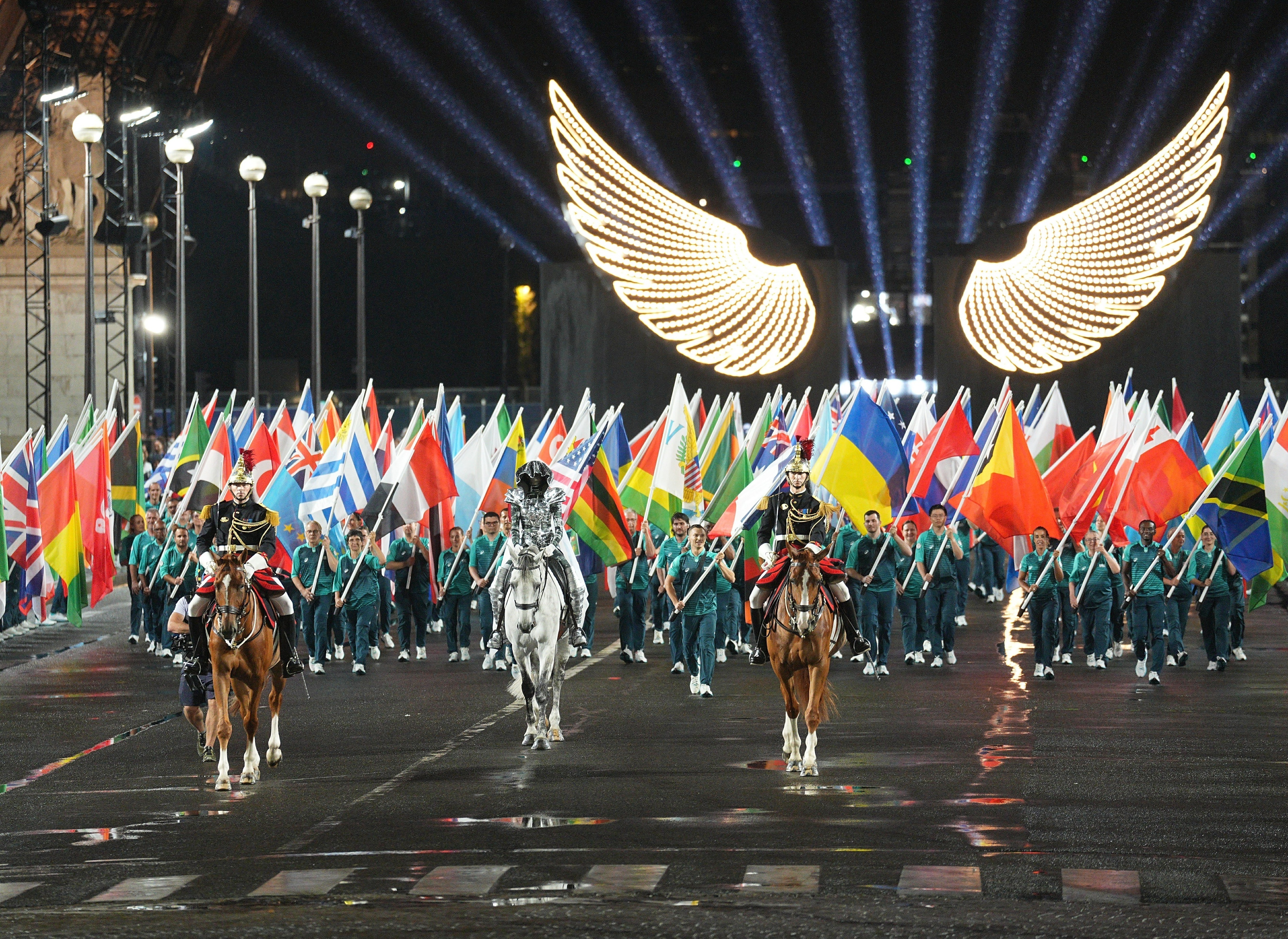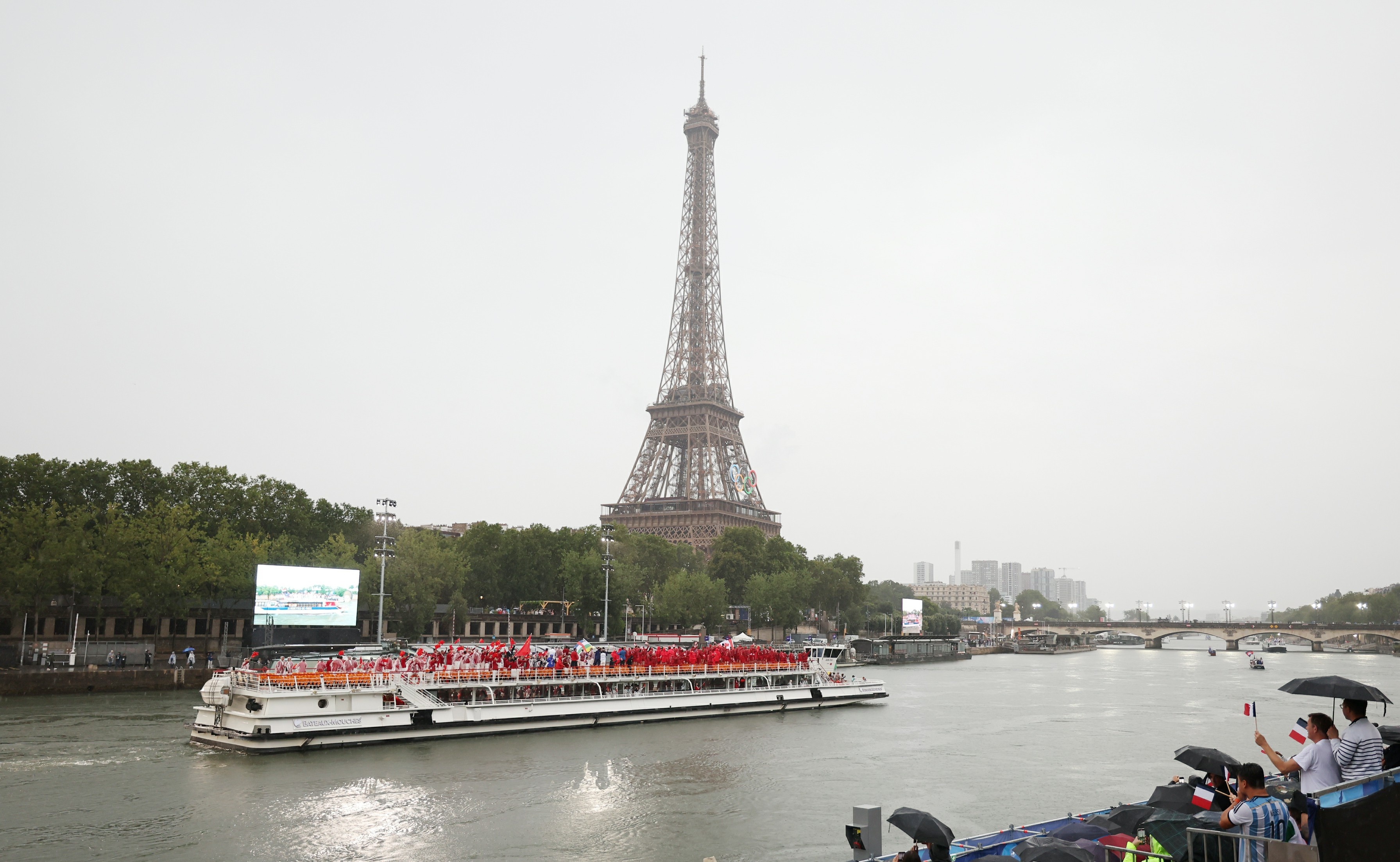6公里的塞纳河化身剧院,沿途大约32万名观众就是这剧院的观众,塞纳河上载着205个代表团的85条游船就是舞台,参加开幕式的运动员代表,他们是这个剧院中的主角。