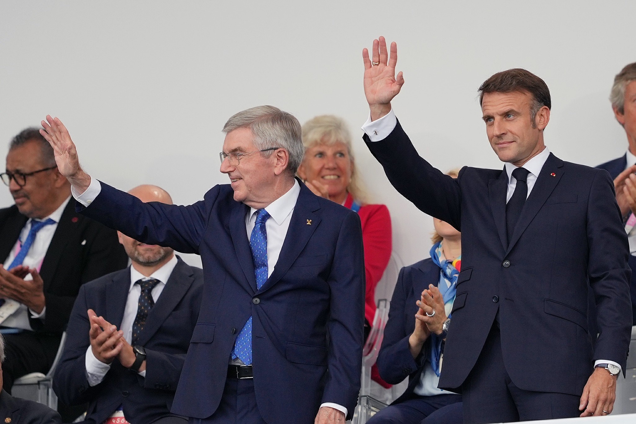 国际奥委会主席巴赫和法国总统马克龙出席开幕式。