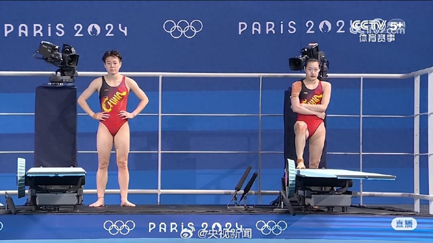 比赛现场,全红婵和队友们在观众席为姐姐们加油。