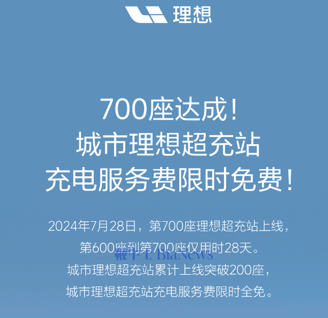 鞭牛士 7月27日消息,理想汽车宣布理想超充站建设达700座,与第600座仅隔100天。截止目前,理想城市超充站累计上线突破200座,高速超充站破480座。
