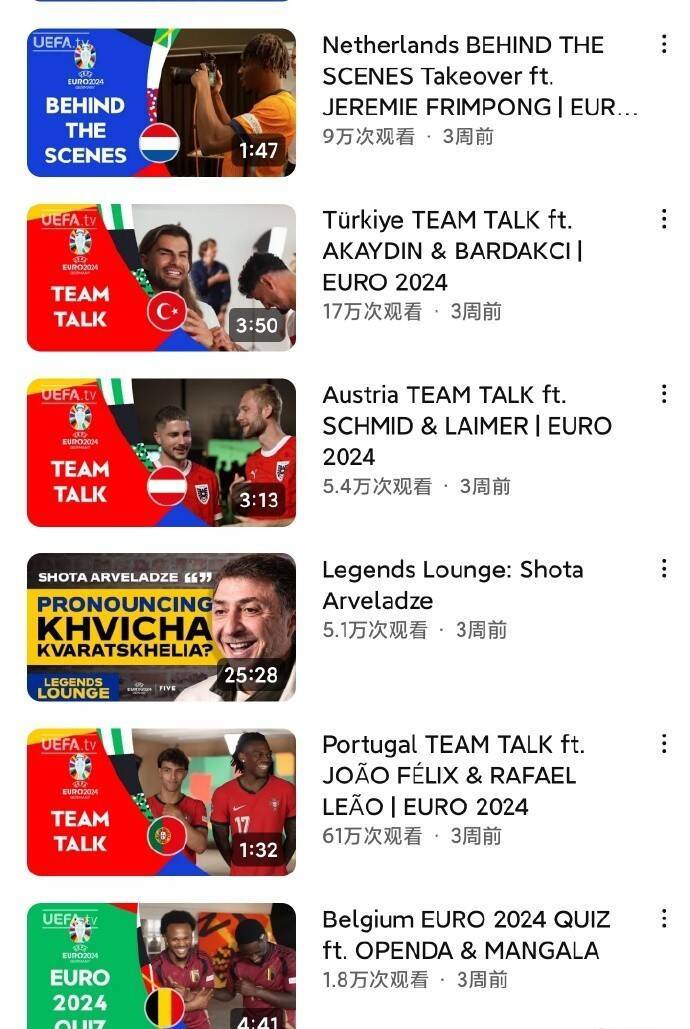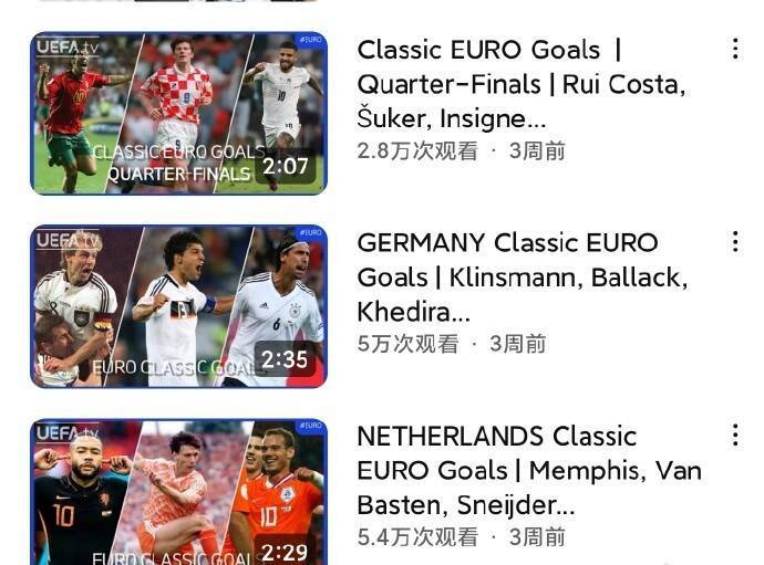 现在倒是管得更加严格了,但是独家和分发又有了矛盾于是乎像之前结束的欧洲杯,我们也能看到在欧足联官方油管频道,他们宣发的内容只能发过往的比赛视频内容比如——图13