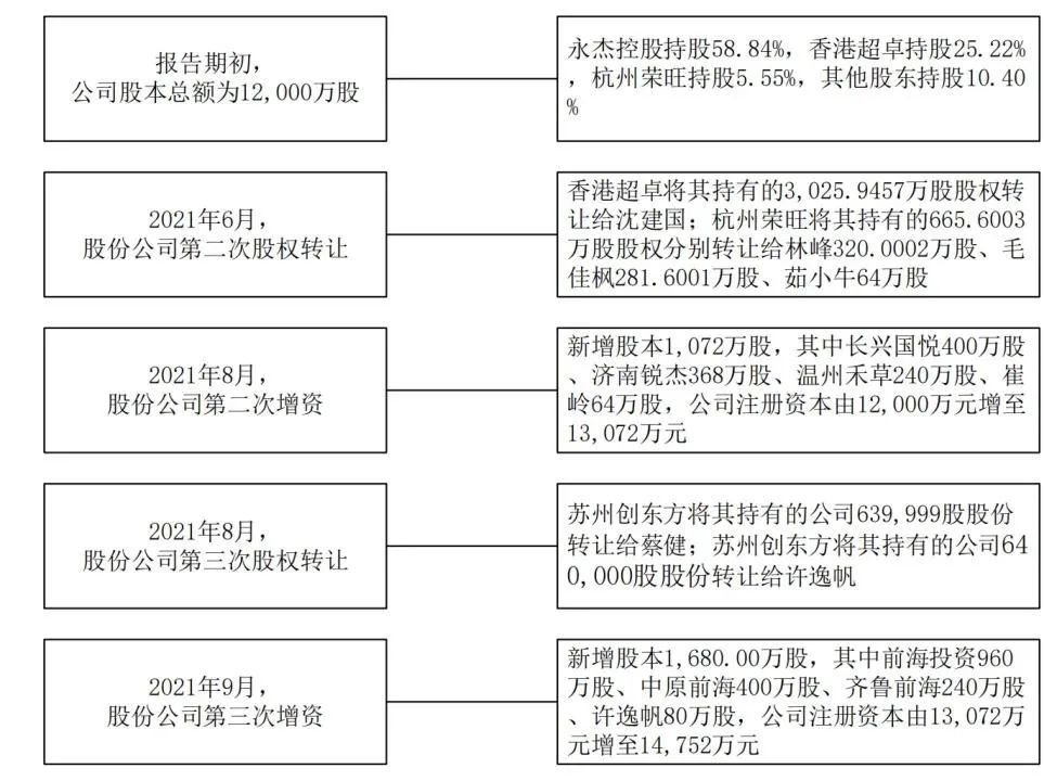 2021年,永杰新材曾进行多次股权变更,涉及多名自然人和投资机构。