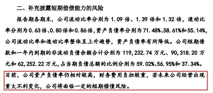 永杰新材虽然回复称,公司货币资金充足,现金流量情况良好,但也承认,公司存在出现短期偿债风险的可能。