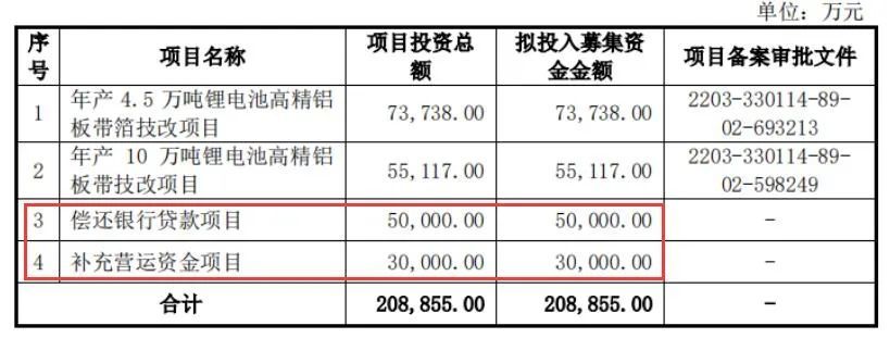 与巨额负债和现金分红对应的是,永杰新材此次IPO拟募资约21亿元,其中5亿元用于偿还银行贷款,3亿元用于补充营运资金,用于还贷及补流的金额共计8亿元,占拟募资额比例超过38%。