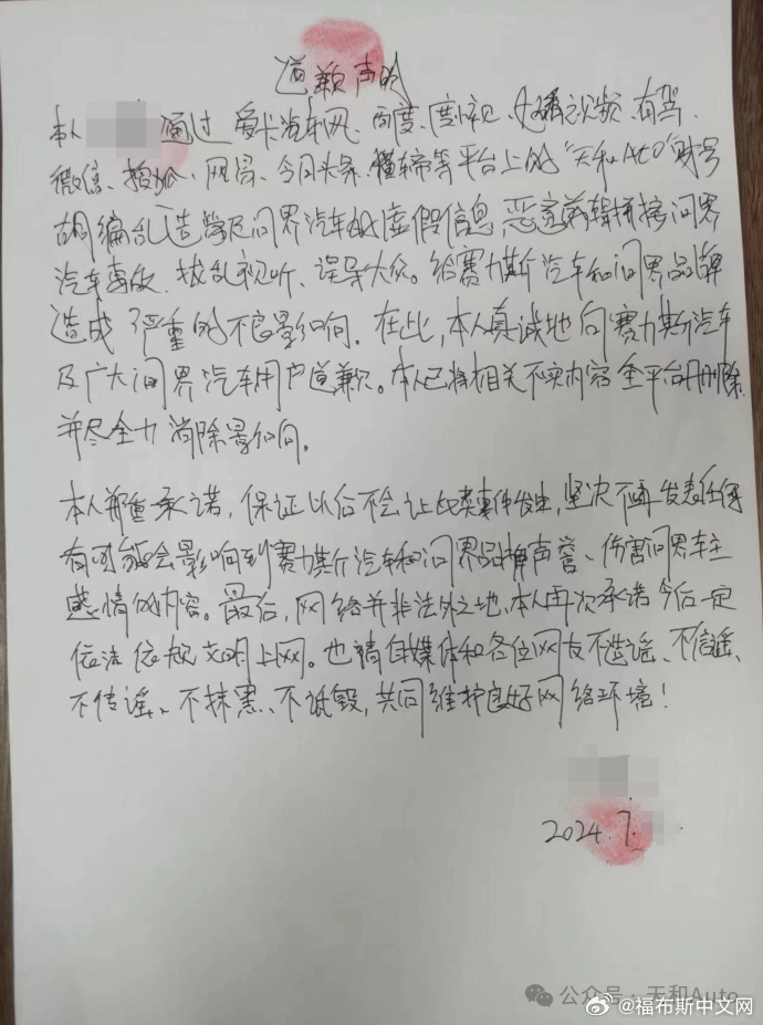 该博主称,自己给赛力斯汽车和问界品牌造成了严重的不良影响,真诚地向赛力斯汽车及广大问界汽车用户道歉,他已将相关不实内容全平台删除,并尽全力消除影响。