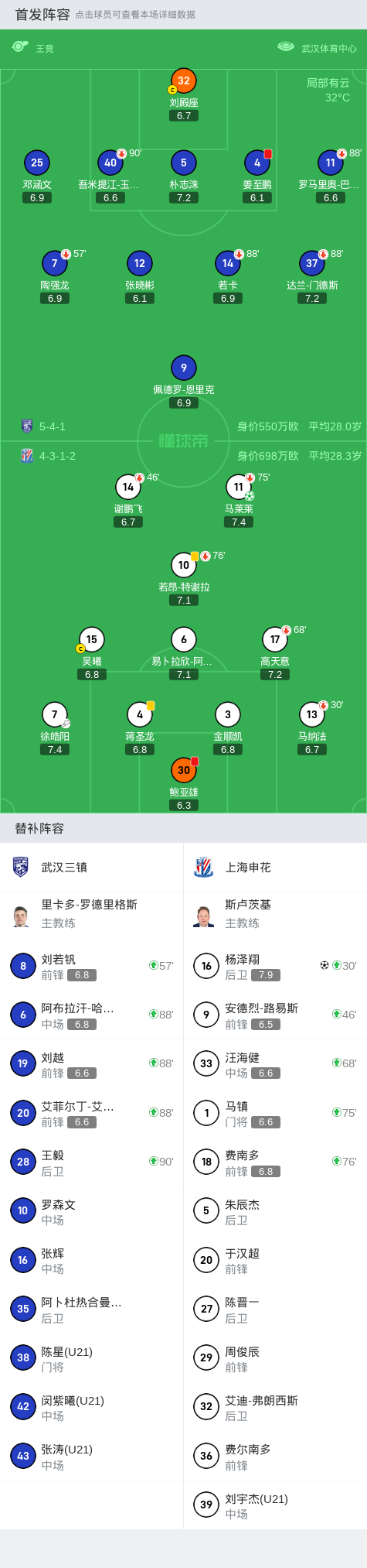 第46分钟,申花半场调整,路易斯换下谢鹏飞
