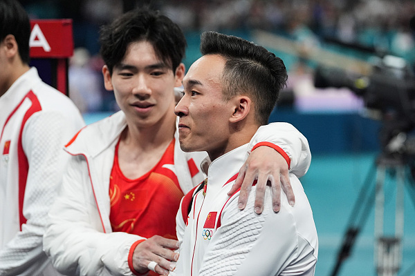痛失体操男子团体金牌后,张博恒安慰流泪的肖若腾