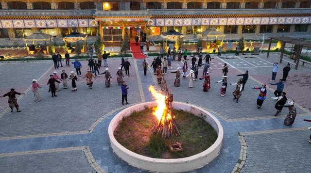 在高原的星光下,篝火晚会点燃了热情的火焰,火光跳跃,映照着每一张笑脸,人们手拉手,围成圆圈,歌声、笑声、鼓声交织在一起。在这里,无论来自何方,都能共享这份欢乐与和谐。