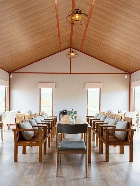 区别于其他一味宣传藏族风情的帐篷营地,这家牧场更偏向“森系小清新”的氛围,原木、白色窗纱和藏香在这里随处可见。营地共包含一千平方米的接待大厅和十七间高端客房,可提供私享管家服务与特色文化藏餐。