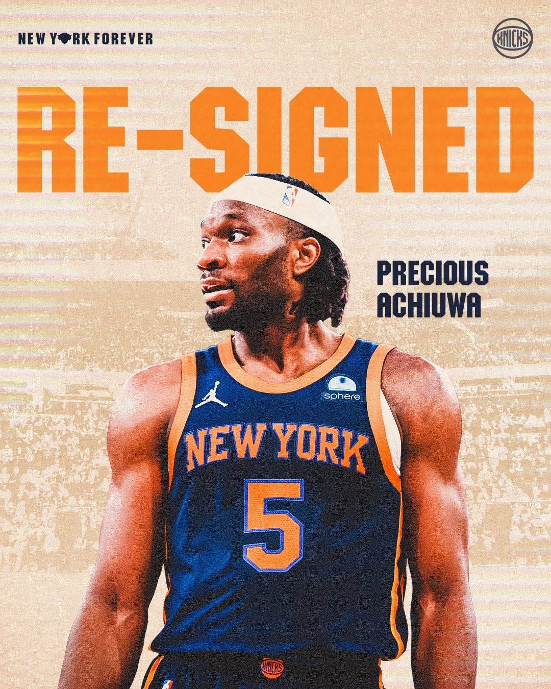 纽约尼克斯北京时间今日凌晨官方宣布,与球队前锋普雷舍斯-阿丘瓦完成续约。