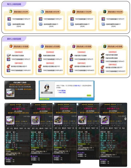 双击获得的每日上线,积累上线奖励箱,可以获得对应的道具奖励。