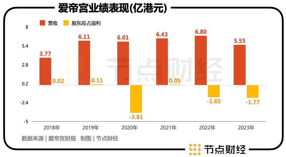 比如,先一步上市的爱帝宫,2022年和2023年分别亏损1.65亿港元、1.77亿港元,拉长时间轴看,更是亏多赚少,即便偶有结余的年份,也不过区区几百万。