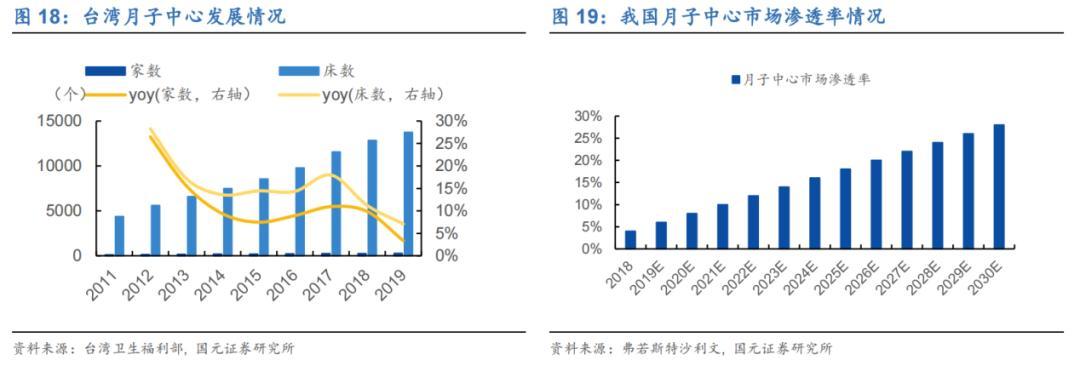 根据弗若斯特沙利文报告,中国大陆月子中心的市场渗透率不足5%,而中国台湾月子中心,渗透率则高达60%以上。