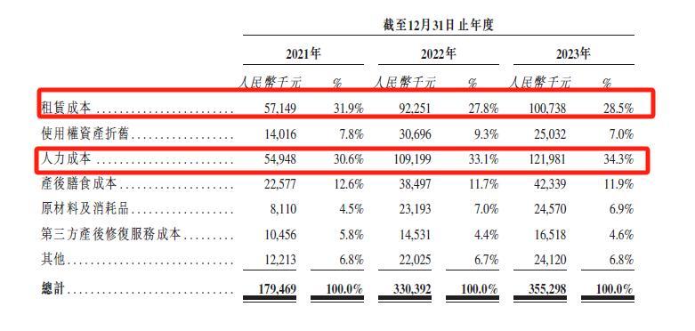 以圣贝拉为例,2021年至2023年,租赁成本分别为0.71亿元、1.23亿元和1.26亿元,占当期收入的比例为27.5%、26.1%和22.5%;