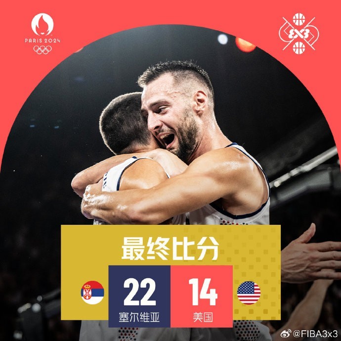 北京时间7月31日04:35,巴黎奥运会男子三人篮球循环赛继续进行,美国队对阵头号种子塞尔维亚队。美国队开局占优,但塞尔维亚队在反超比分后持续在外线输出火力,建立起领先优势。最终,塞尔维亚队22-14战胜美国队,迎来开门红。