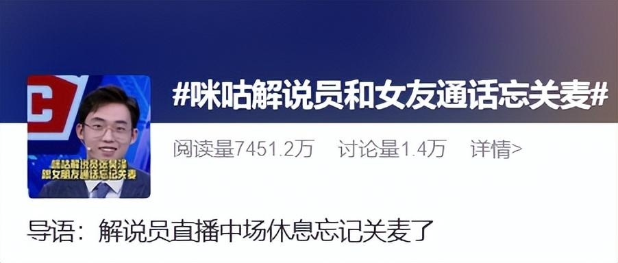 7月30日晚,奥运会足球项目直播中,咪咕解说员张昊泽中场休息时间和女友通话忘记关麦,在网上引发热议。
