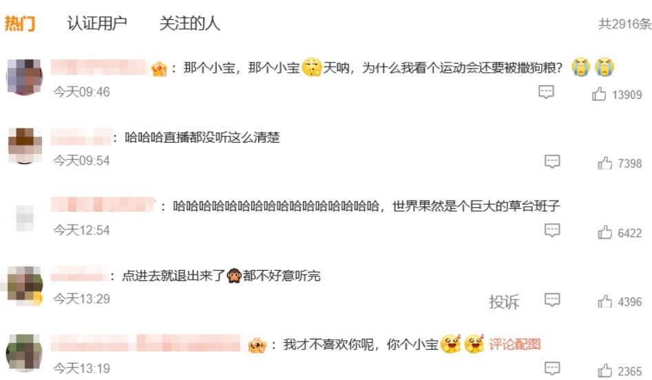 这段画面曝光后,相关话题登热搜榜,出稿前阅读量超7451万,众多网友热评:“天呐,看个运动会还要被撒狗粮?”
