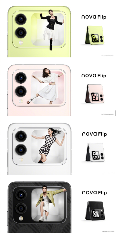 根据官方消息,华为nova Flip 的外屏采用简约的方形设计,非常具有辨识度。主打配色「向新绿」更符合潮流年轻人的审美,展现出年轻人的不羁个性和张扬的态度。还有「樱语粉」、「零度白」和「星耀黑」这几款多元配色,开启新生纪元。