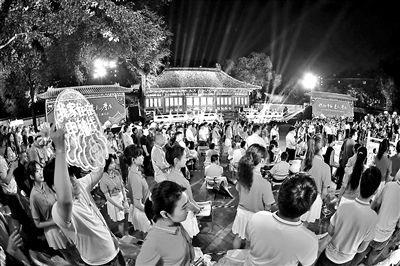 华灯初上,映衬在红墙绿瓦上,让有着近600年历史的先农坛庆成宫熠熠生辉……昨晚8时,由北京市人民政府主办的“根脉中轴 嘉礼庆成——北京中轴线申遗保护群众性主题活动”在先农坛庆成宫举行。