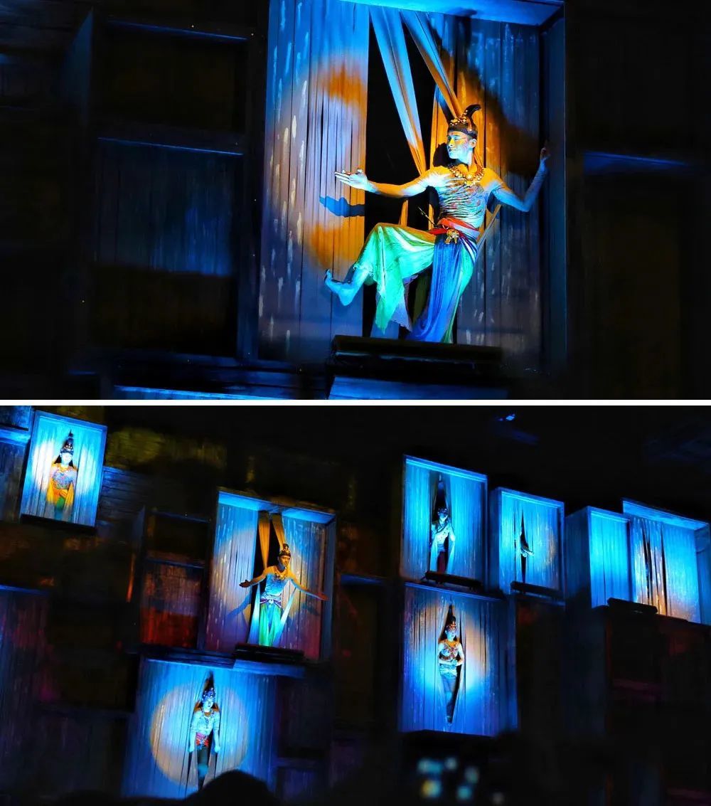 “又见敦煌”通过对层次的演绎,涵盖了莫高窟石窟、壁画、岩壁多项文化元素,再现莫高窟从开窟到繁华,再到王道士揭露千年莫高窟神秘面纱的全过程。每个演绎空间将重建今日与历史的连接点,带你穿越时空、梦回千年,拉近历史,横跨古今。