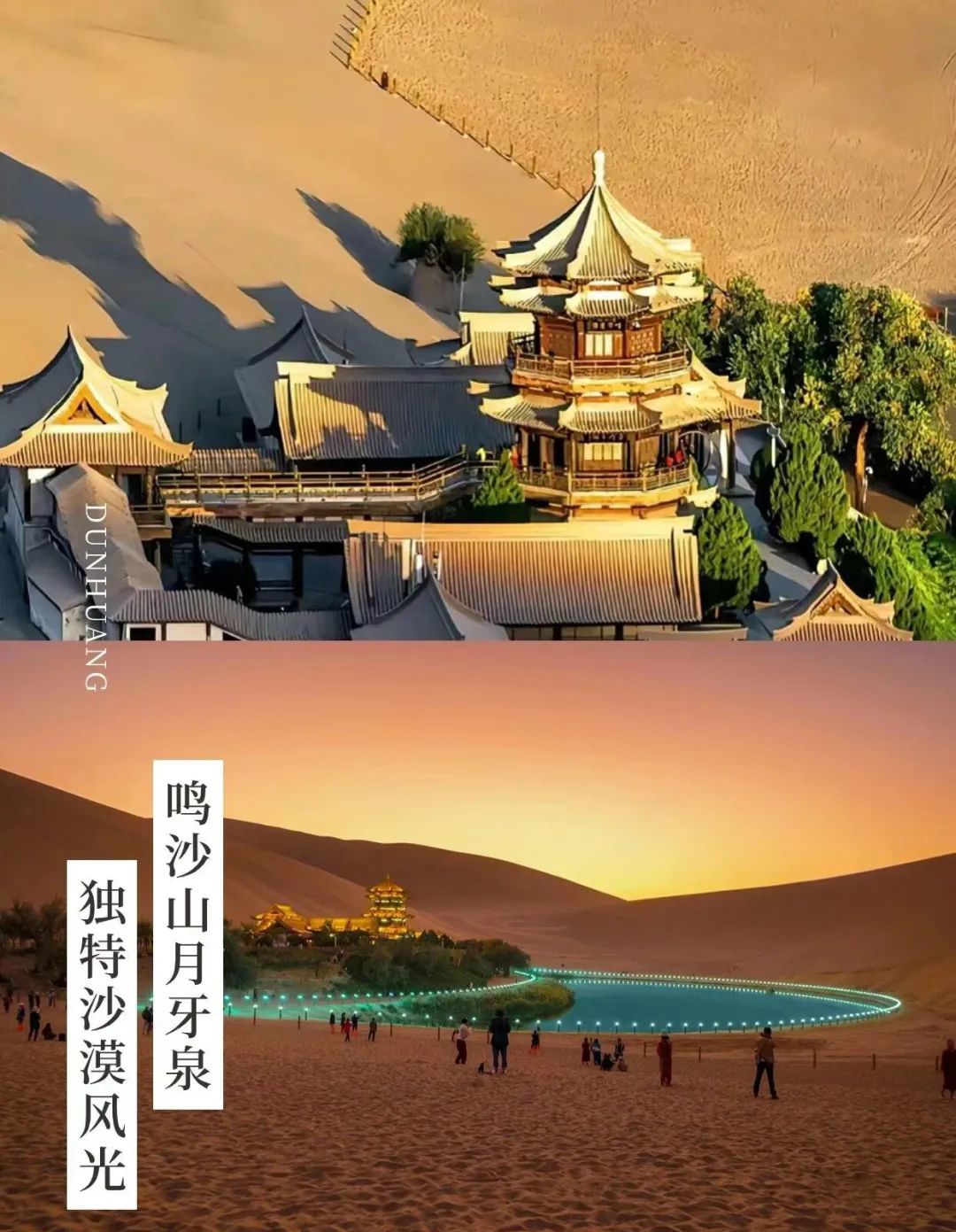 ※ 游览沙漠奇观--“沙泉相依、沙不填泉、泉不干涸”的【鸣沙山月牙泉】历来水火不能相容,沙漠清泉难以共存。但在鸣沙山中,却能看到沙漠与清泉相伴为邻的奇景
