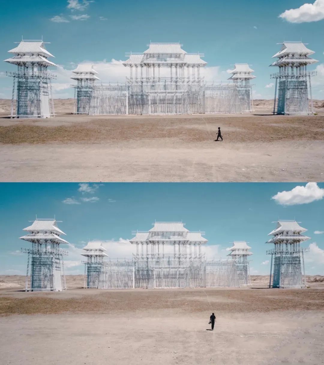 无界——敦煌东线,位于瓜州艺术长廊,独特的造型结构,矗立在茫茫的戈壁滩,犹如海市蜃楼。