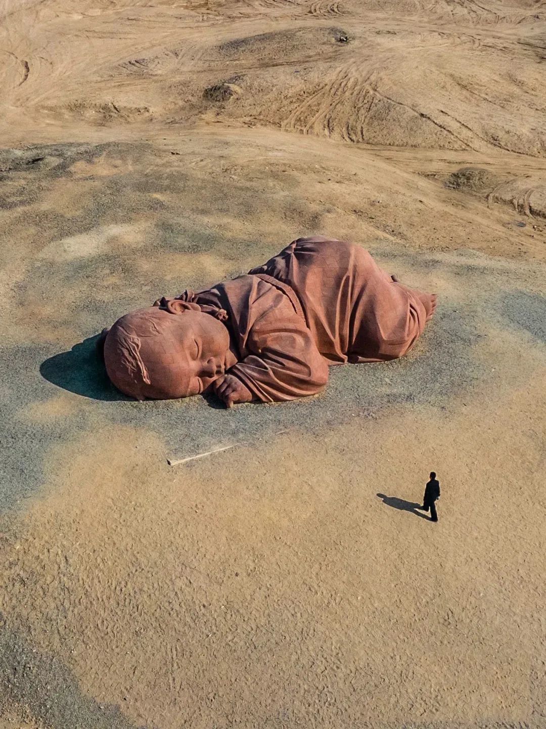 大地之子——天为被地为床,由清华大学董书兵教授设计雕刻,想通过雕塑的艺术展现来唤醒公众对地球的环保意思。很值得一去!