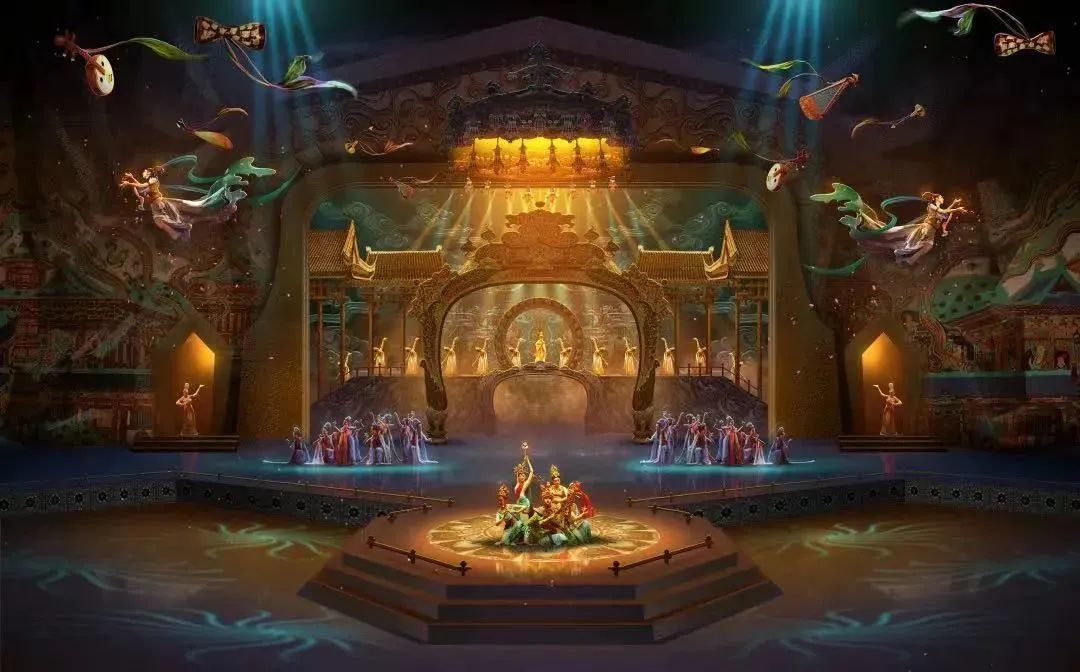 主剧目《乐动敦煌》,是全球首部洞窟式沉浸体验剧。作品溯源敦煌文化,借助对莫高窟壁画、古籍的深度解读梳理,活化敦煌古乐器,以全沉浸式的呈现方式,演绎了西域少年追寻艺术的传奇故事。