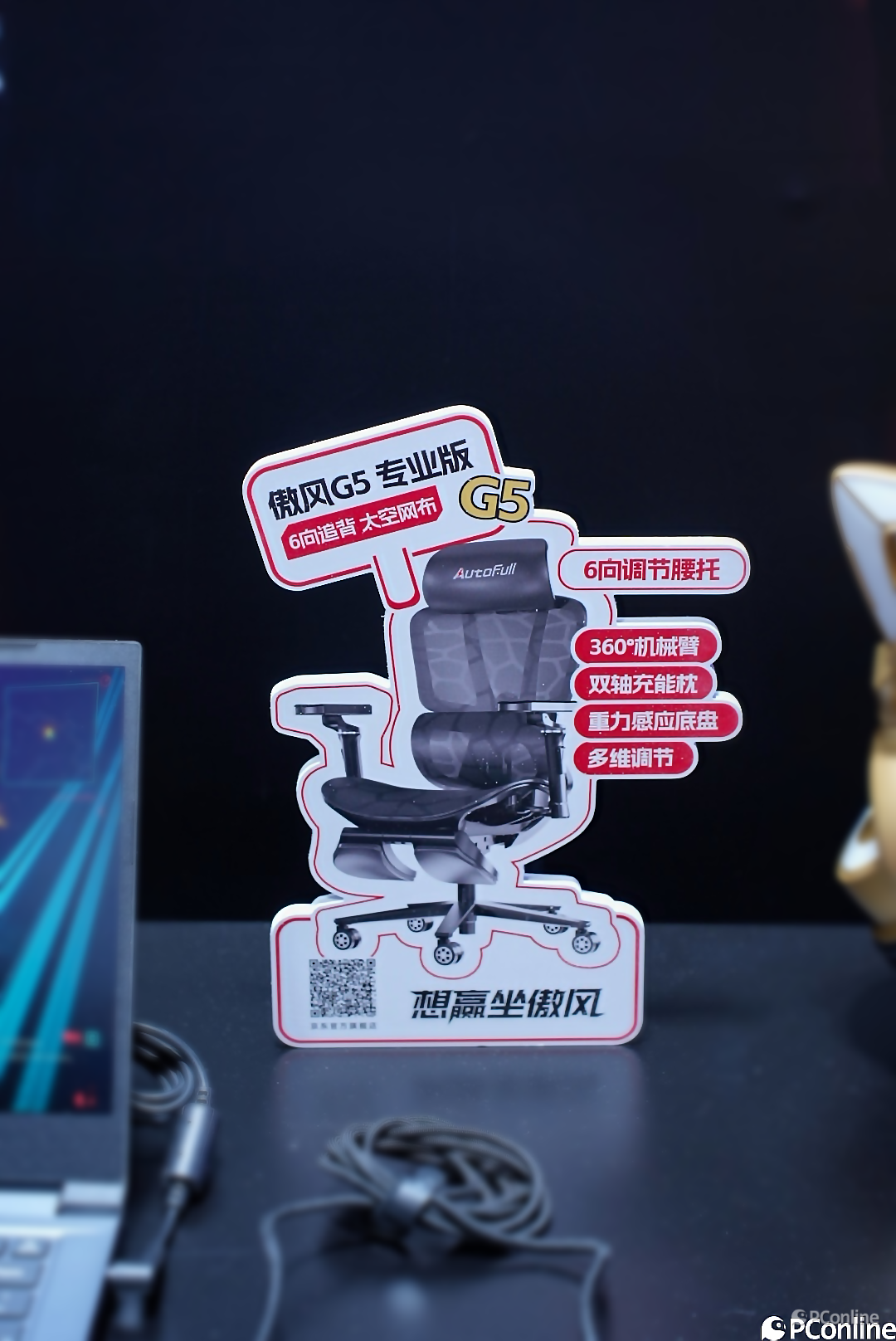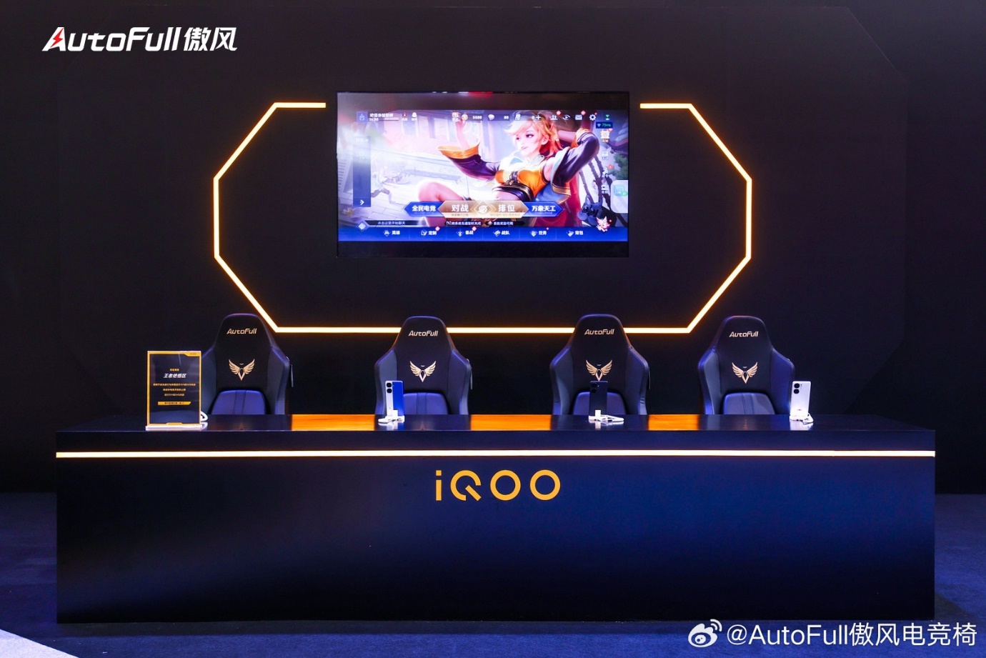 在iQOO的对战展区上,选手们正在乘坐的就是傲风电竞椅;
