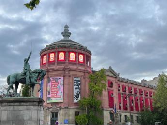 走近吉美博物馆,首先映入眼帘的是被红色薄纱轻轻笼罩的外立面。红纱包裹石墙,为这座历史建筑增添了浓郁的中国风韵。蒋琼耳将这个大型装置艺术作品取名“民胞物与”,从古老石窟汲取灵感,儿时游历敦煌莫高窟、云冈石窟和龙门石窟的画面从记忆深处迸发,通过当代的创造与诠释,蒋琼耳让连脉历史的古老洞穴重现于博物馆的建筑外观。