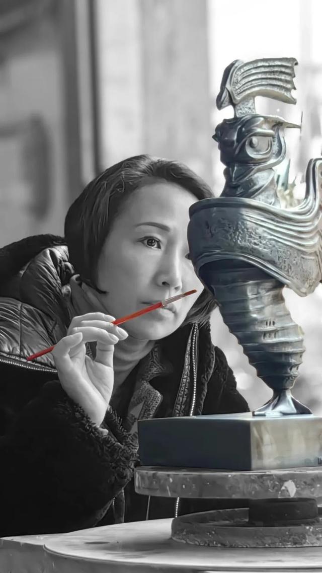 在杭州的工坊里,蒋琼耳亲手雕刻着每一种神兽的表情与神态,她静静凝望着它们,仿佛凝望着自己的孩子,而神兽们也仿佛轻声细语地与她说着话。她亲手用细腻的砂皮纸,给每个神兽轻轻地磨出它们的每一个眼神;当她用手轻轻地捧起几百年的石头,时间的温度沁润肌肤,怀着真诚与崇敬,她用双手留下她心中属于当代人类的印记。神兽新生,蒋琼耳说,也是她的重生与回归。在创作过程中的无数个瞬间,童年学画画的小女孩与今日的蒋琼耳身影交叠,两岁时就拿起的画笔,以及绘画、书法相伴的童年岁月,一点一点塑造着她,牵引着她,让她成为她。彼时今日,那个起初朦胧恬静的艺术酣梦已成为现实的模样。
