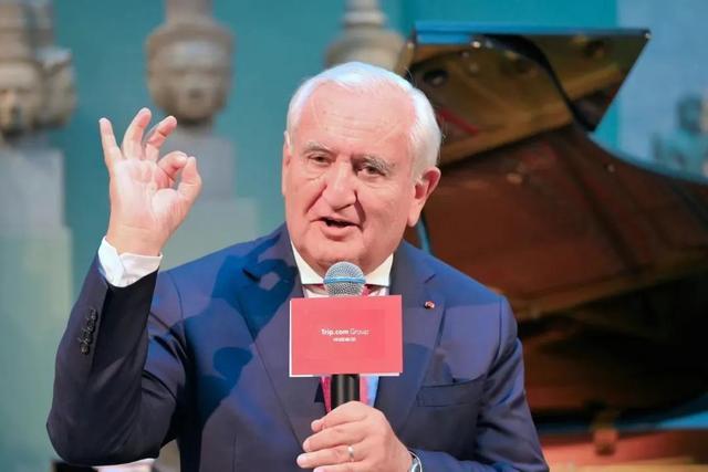 ▲《时间的容器》开幕现场,法国前总理让-皮埃尔·拉法兰(Jean-Pierre Raffarin)致辞,2024