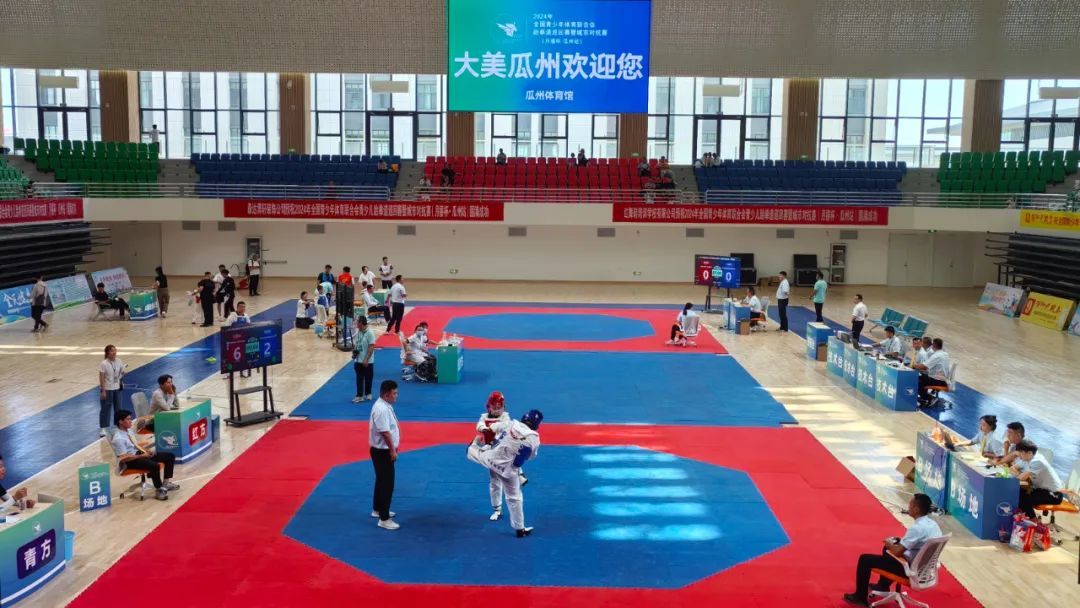 盛夏的瓜州,瓜果飘香。在瓜州县体育馆内,参赛选手激情四溢、拳脚生风,各个组别的选手精神抖擞、动作干练,一招一式尽显娴熟,将品势套路中的攻击与防守、前进与后退、速度的缓急、刚与柔等表现得淋漓尽致。比赛现场,选手们的喊声震动场馆,雪白或黑色的道服、飘扬的道带、爆发力强劲的动作,共同演绎跆拳道比赛的独特魅力,充分展现了青少年顽强拼搏、昂扬向上的精神风貌。