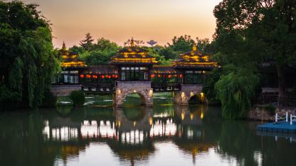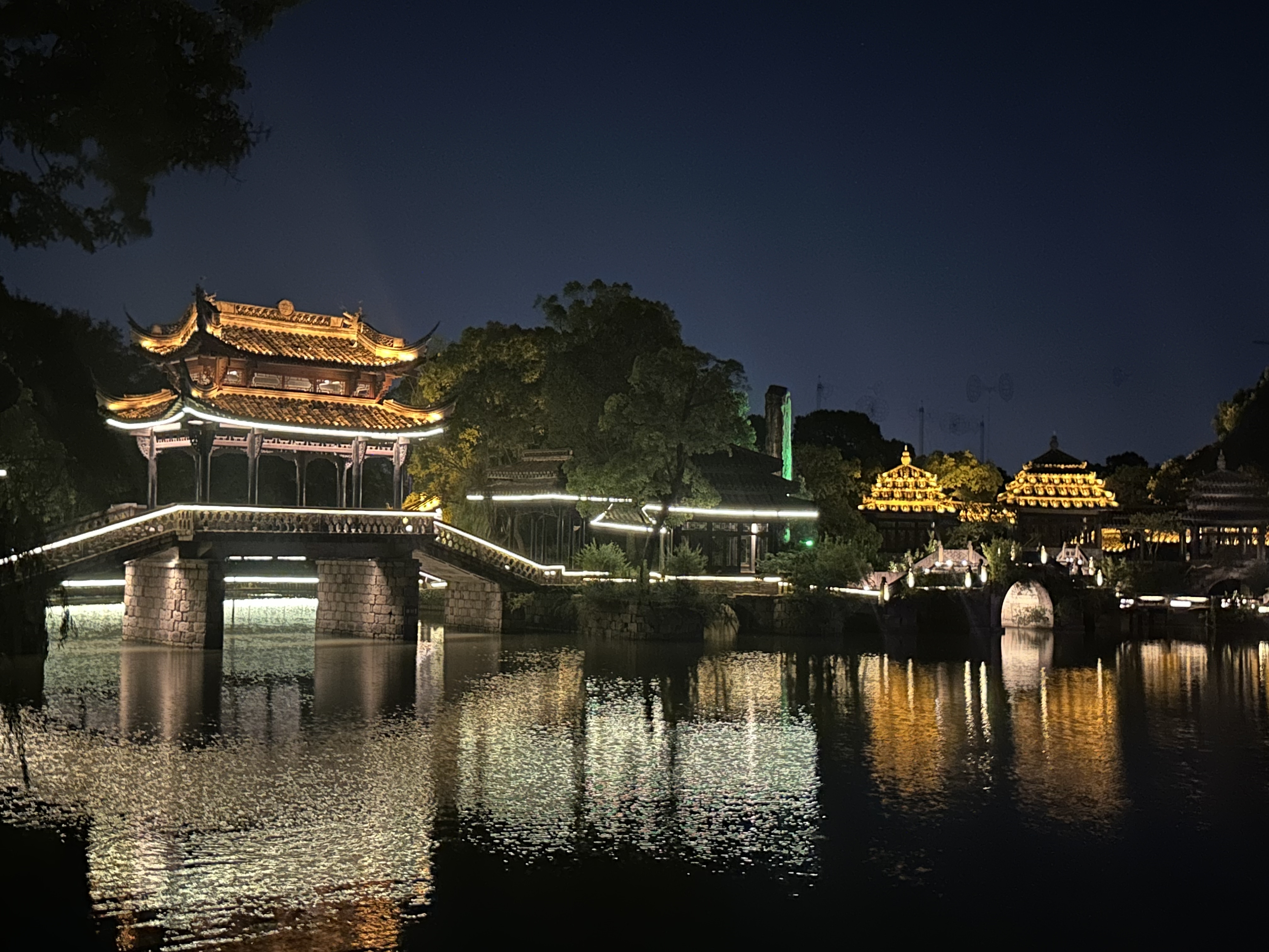 科技的加持与文化的深度融合,共同激发了水博园夜游的无限魅力。当夜幕降临,星光点缀,水博园在夏日的夜晚焕发出独特的光彩。灯光与技术巧妙结合,将这片江南古典园林变成了一幅巨大的视觉艺术画卷,光影交错,层次分明。