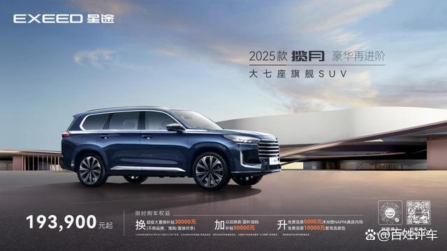 2025款星途揽月带给用户的不仅是一台高阶旗舰产品,更是一份一诺千金的高价值服务保障,从购车到用车,全面提升用户高阶价值体验感,打造大七座高阶爆品。8月31日前大定用户可享受限时购车权益,三重福利实力宠粉: