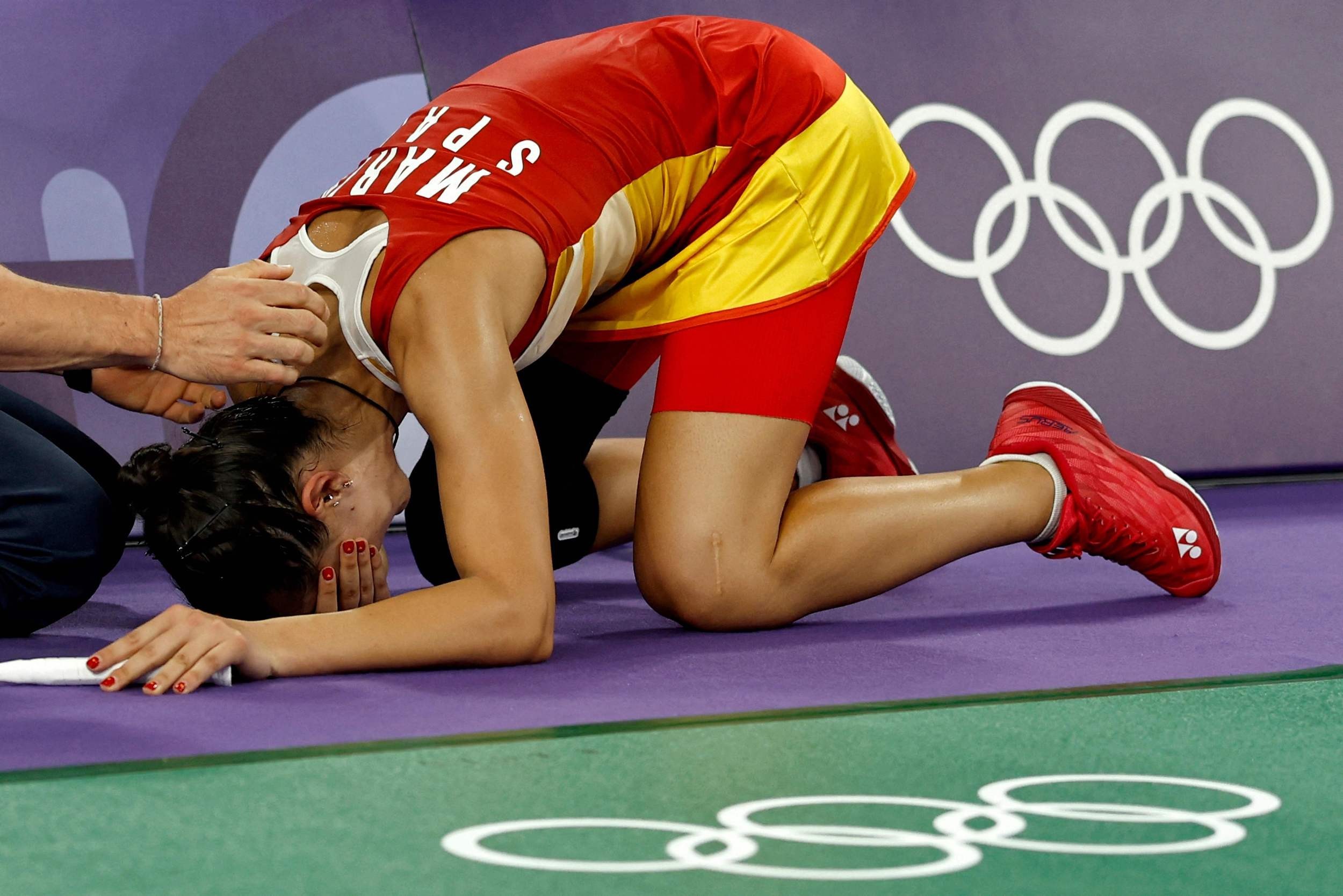 在巴黎奥运羽毛球女单半决赛中,西班牙选手卡罗琳娜-马林在取得领先的情况下遭遇受伤,最终因伤退赛,中国选手何冰娇晋级决赛。