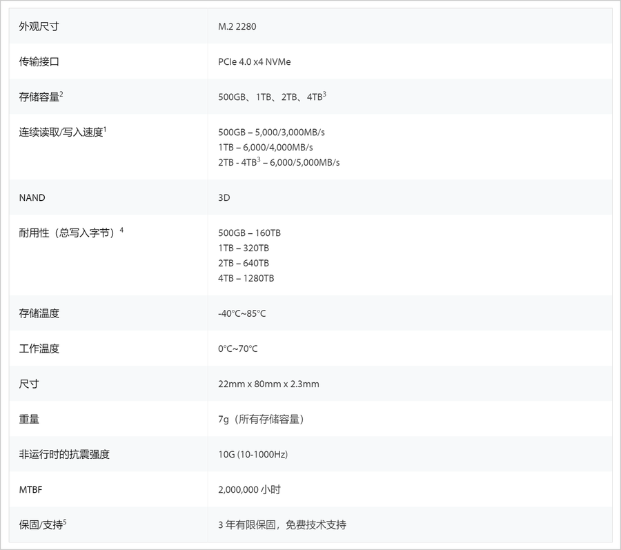 2TB和4TB版本:至高连续读取速度可达6000MB/s,至高连续写入速度可达5000MB/s。
