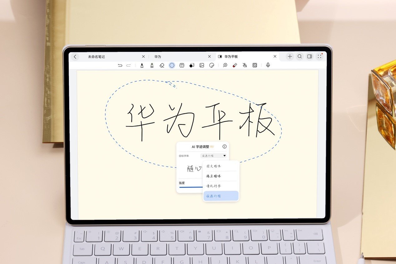 华为MatePad Pro 12.2英寸内置的华为笔记App迎来全新界面,更高效的工具栏可以减少用户的使用路径。还有海量的贴纸素材和封面素材,更多的花样也让单一的文字变得更有趣。还有AI加持带来AI慧写功能,支持AI字迹调整、AI拼音联想、AI手写编排、AI多人语音转写等新功能。比如当遇到不认识的字或词语时,可以先打出拼音,AI拼音联想功能就会根据上下文联想并且推荐出这个拼音所对应的字或者词语,避免了“提笔忘字”的情况发生。